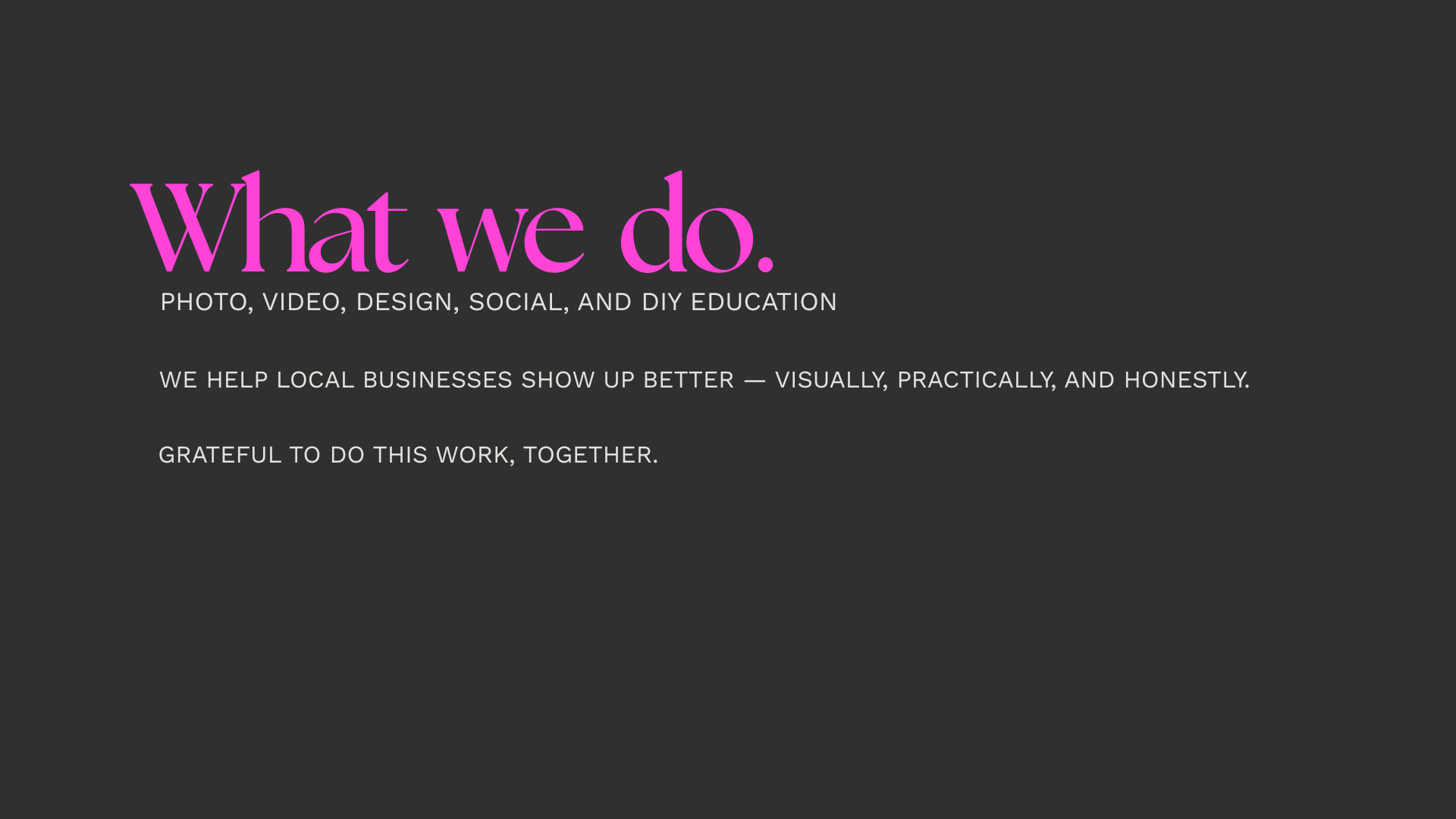 WE COLLABORATE WITH OTHER CREATIVES BECAUSE GOOD WORK IS BETTER WHEN IT’S SHARED. DIFFERENT SKILLS, DIFFERENT PERSPECTIVES, ONE TEAM.